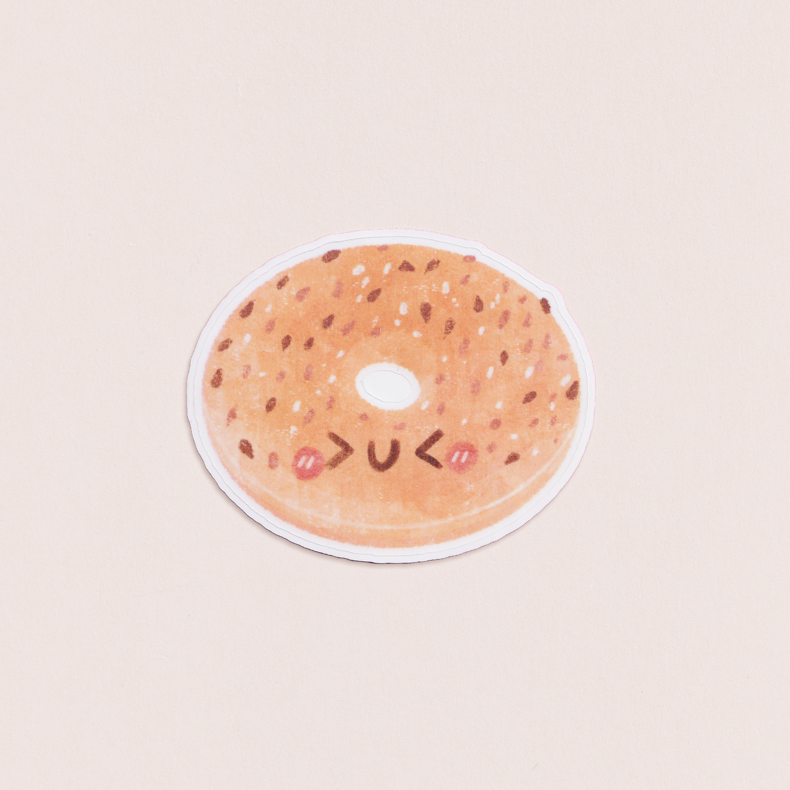 Bajgiel naklejka to ilustracyjna, urocza naklejka z motywem drożdżowego wypieku z dziurką.