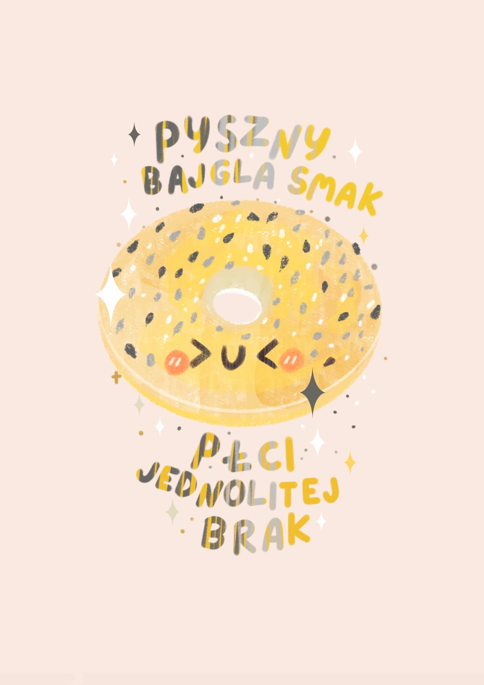 Bajgiel składa się z dwóch części: samego bajgla z dodatkami oraz dziurki. Co może znaleźć się w dziurce? To zależy od bajgla i osoby, która go je – czasem jajko, czasem dżem, a czasem coś zupełnie innego. Podobnie jest z byciem demigender: częściowo utożsamia się z daną tożsamością, ale zostawia sobie przestrzeń na inne, zmienne i wyjątkowe tożsamości. To przypomnienie, że bycie sobą nie wymaga pełnego wypełnienia jednej formy – można eksplorować, zmieniać się i cieszyć się własną, niepowtarzalną mieszanką smaków.