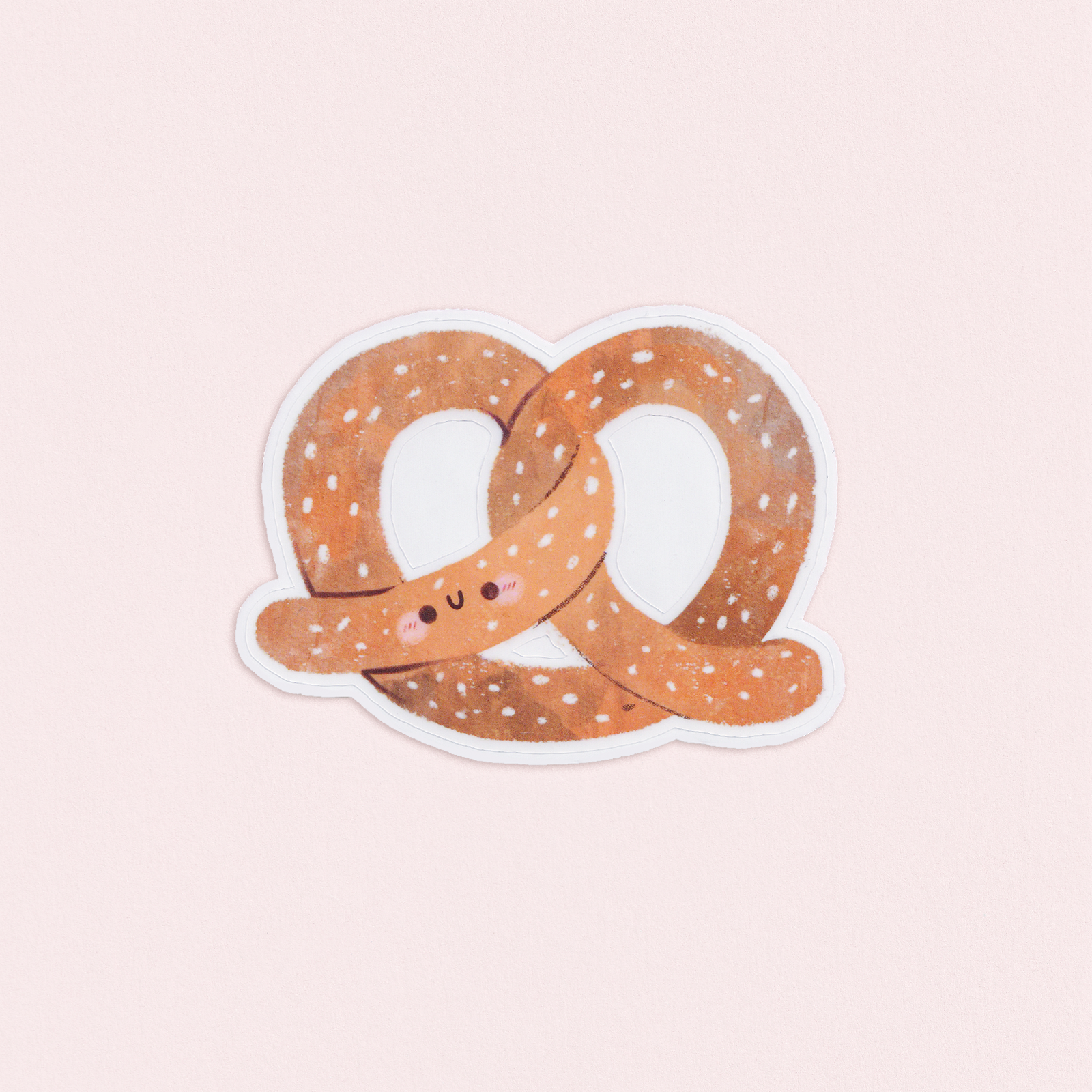 Precel Naklejka to ilustracyjna, urocza naklejka z motywem wypieków, inspirowana klasycznym zawiniętym wypiekiem z solą.